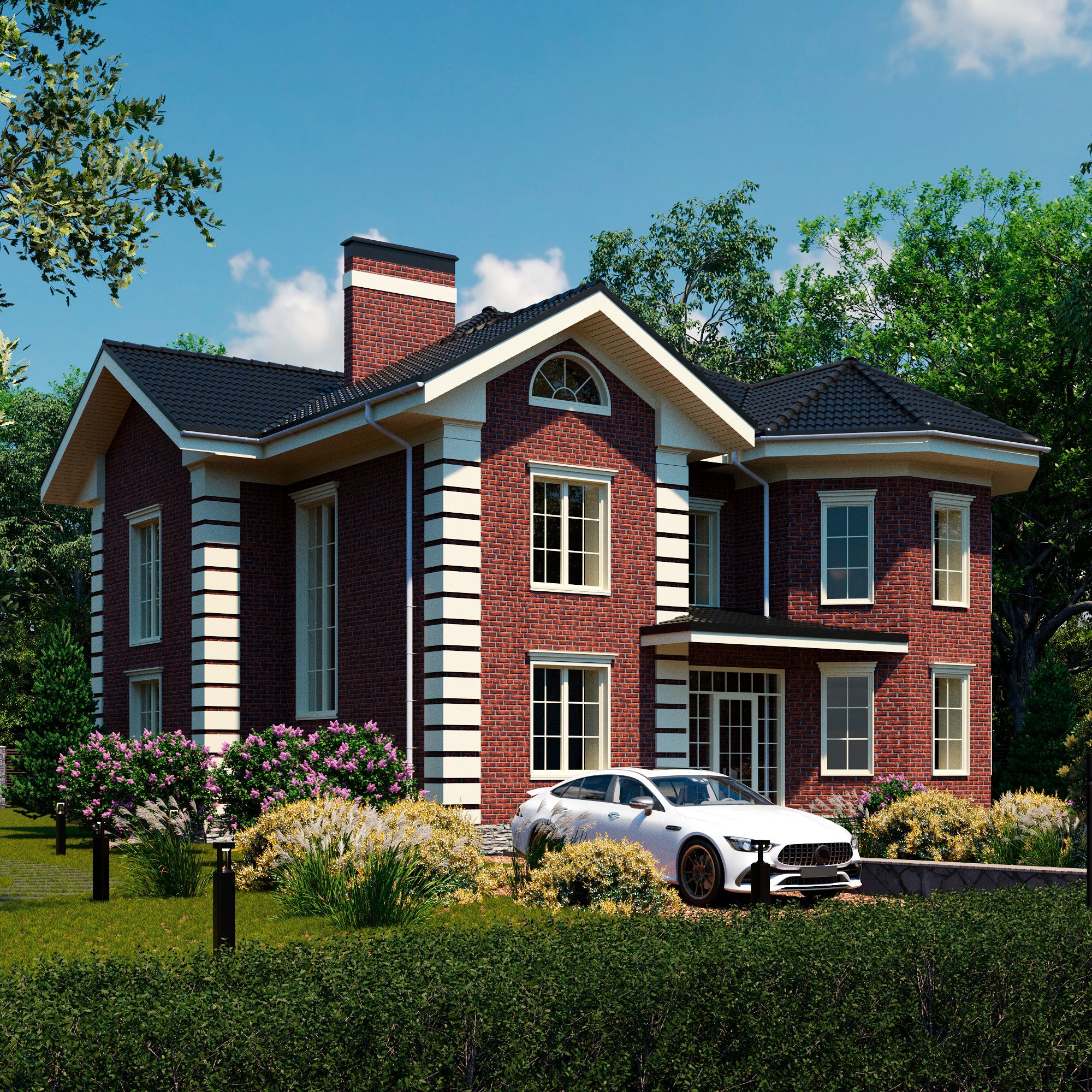 Фасад смотрится эффектно, заметно. При этом цена за кирпич невысокая, что дает возможности для маневров без потери качества.